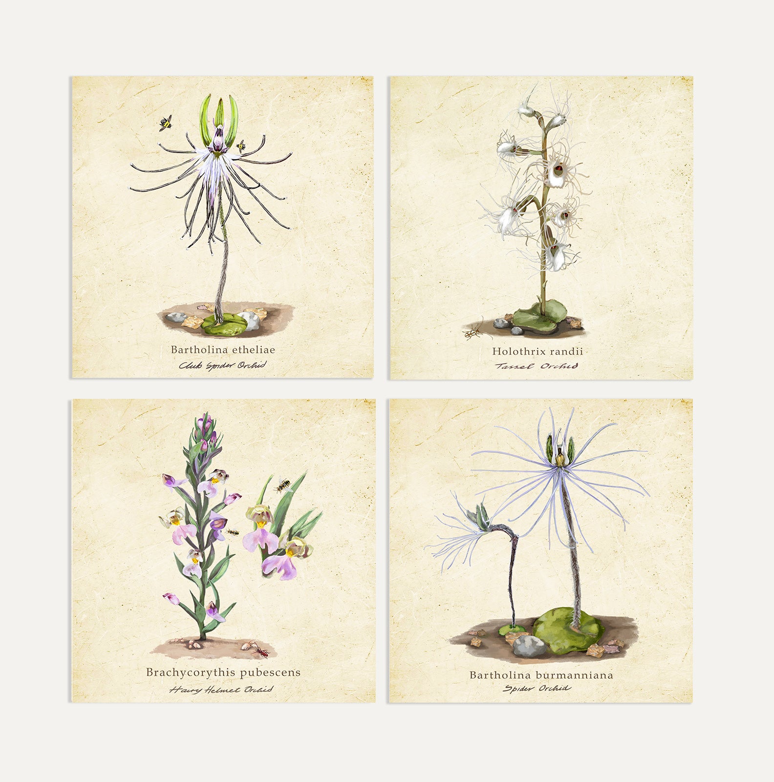 The Spider and Club Spider Orchids are native to The Western and Eastern Cape, and the Tassel and Hairy Helmet Orchids, to Gauteng and Limpopo.